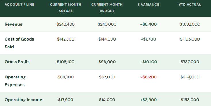 Budget vs. Actual in Financial Reports — Making the Comparison Column Work
