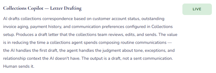 • Collections letters for high-value or relationship-sensitive customer accounts — AI lacks relationship context