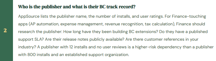 - Finance evaluates AppSource apps through a structured process before installation. “Available on AppSource” means the extension passed Microsoft’s technical validation—it does not mean the business logic is correct for your industry, your processes, or your regulatory environment.