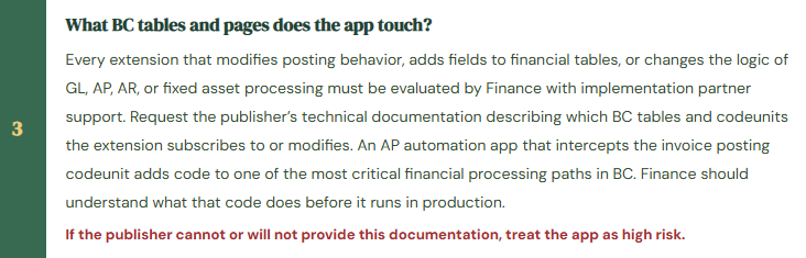 - Apply the full AppSource evaluation framework before installing any Finance-touching app