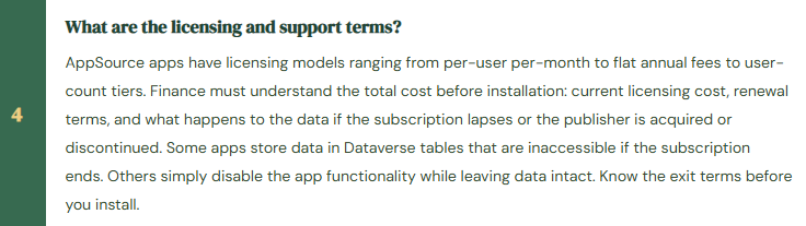 - Treat “available on AppSource” as equivalent to “appropriate for our financial environment”