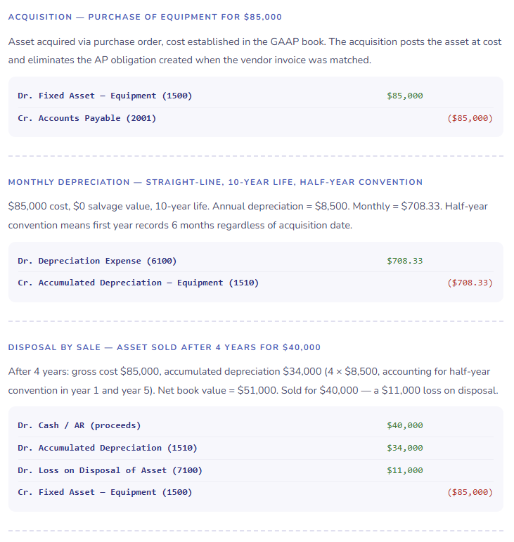 - Document your depreciation convention for each asset class before the first transaction posts — and have your Controller confirm it matches accounting policy