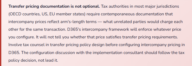 - Involve Tax in transfer pricing policy before configuring intercompany prices in D365