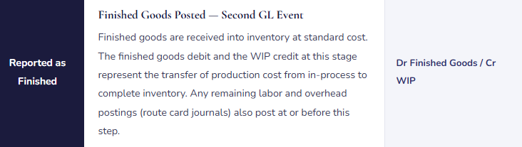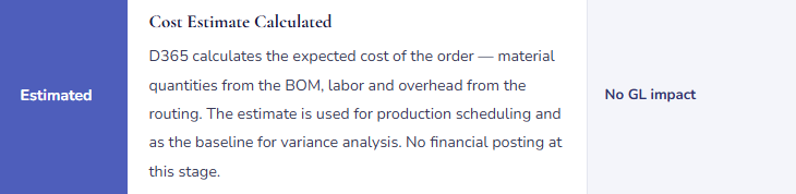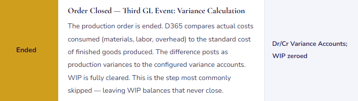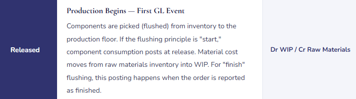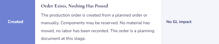 Not every production order status creates a GL posting. Finance needs to know which statuses matter financially, because that determines when WIP moves and when the balance sheet changes.