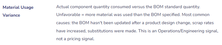 ⚠️ BOMs Not Updated After Product Changes — Usage Variances Absorb Structural Differences