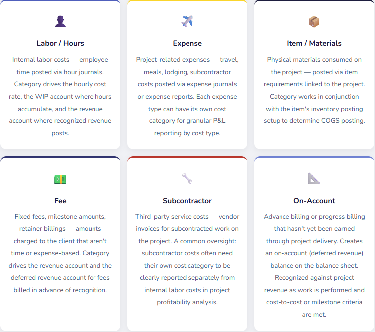Cost Categories — The Project Accounting Equivalent of Posting Profiles